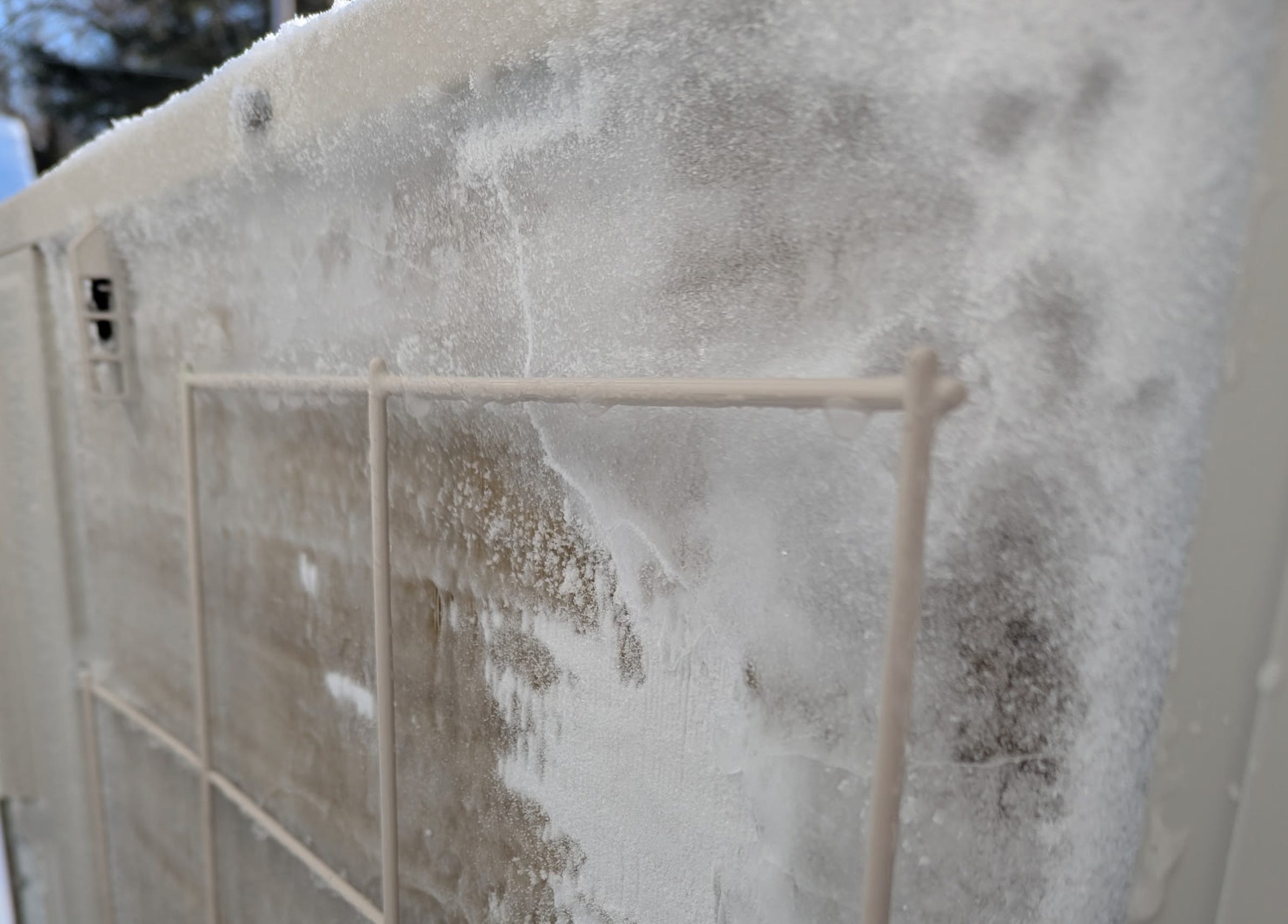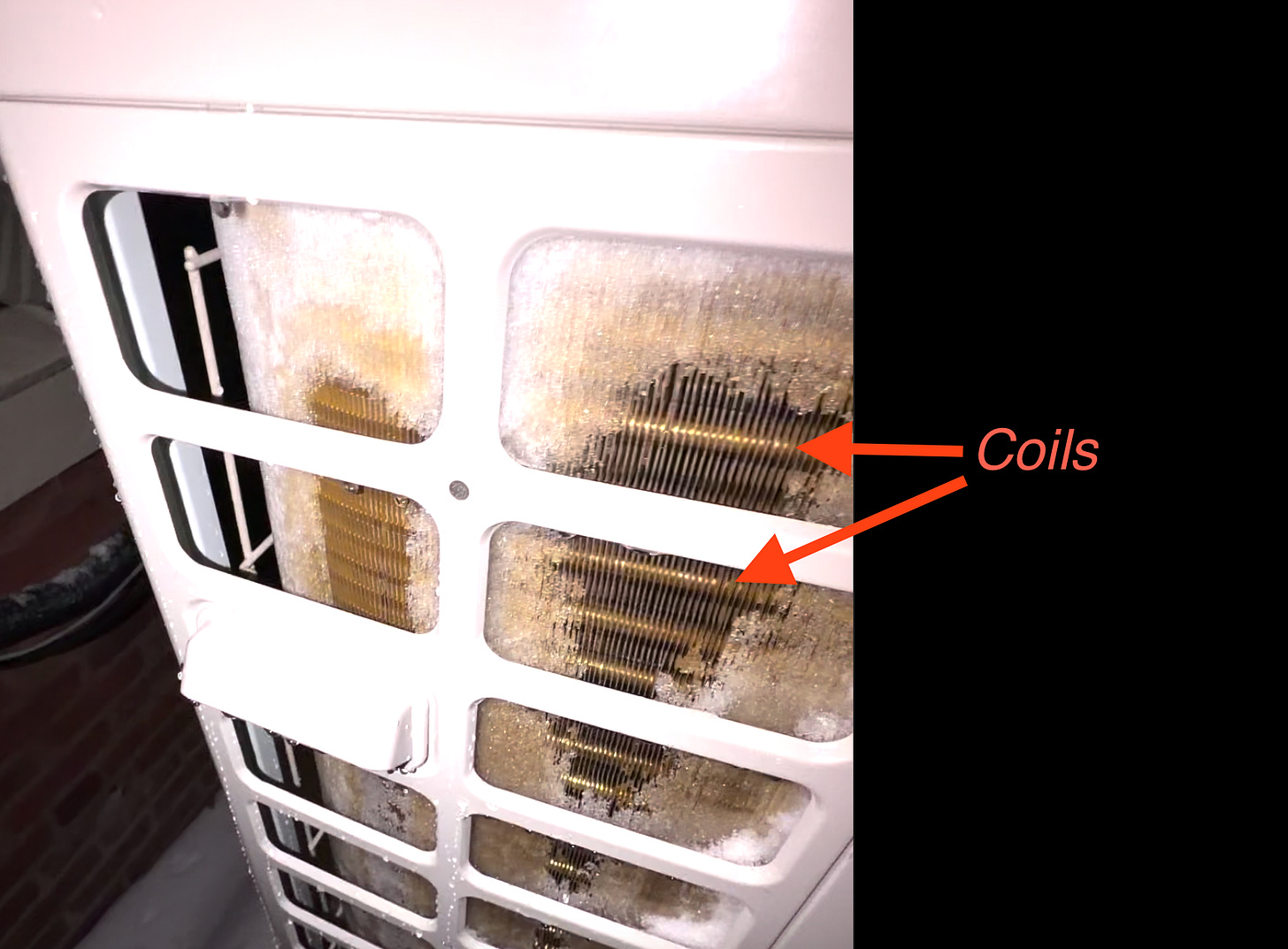 That video was filmed when it was about 10 degrees outside. The other 3 out of 4 outdoor units here for this building was completely fine via. standard defrost (i.e. no manual intervention on our part). Here’s how that looked: