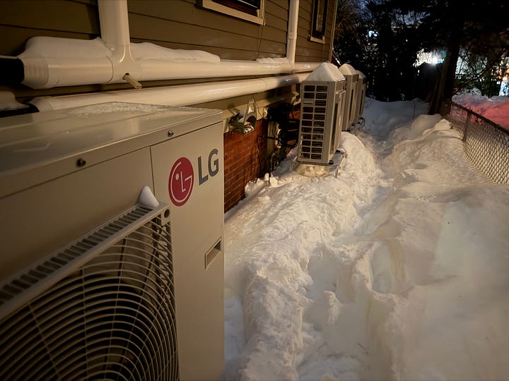 Shortly after the storm started, I sent an email to nearly everyone who we did a heat pump installation for back in 2015. That accounts for about ~75, maybe 80 outdoor units out there, a mix of LG, Daikin, and Mitsubishi.