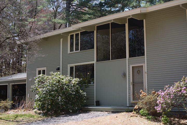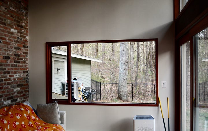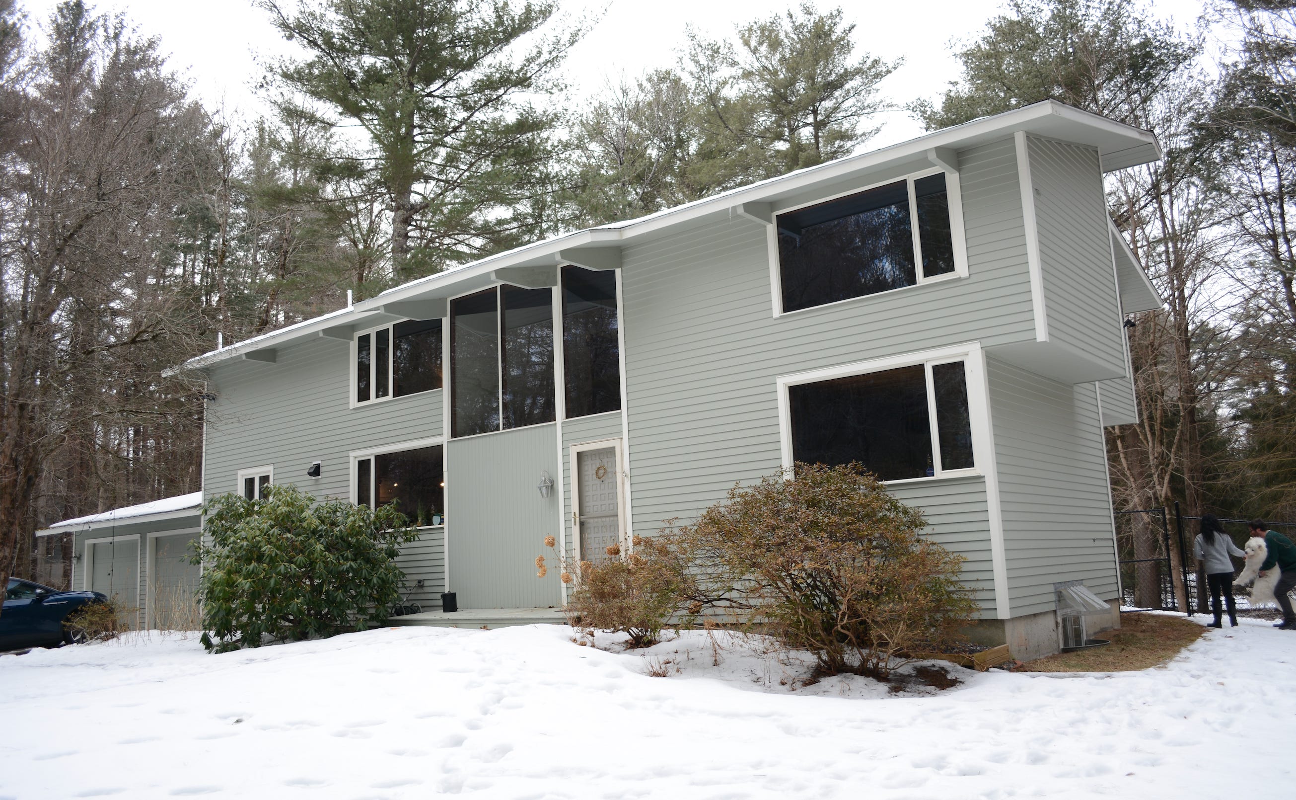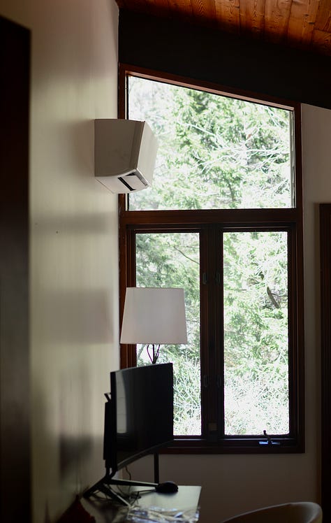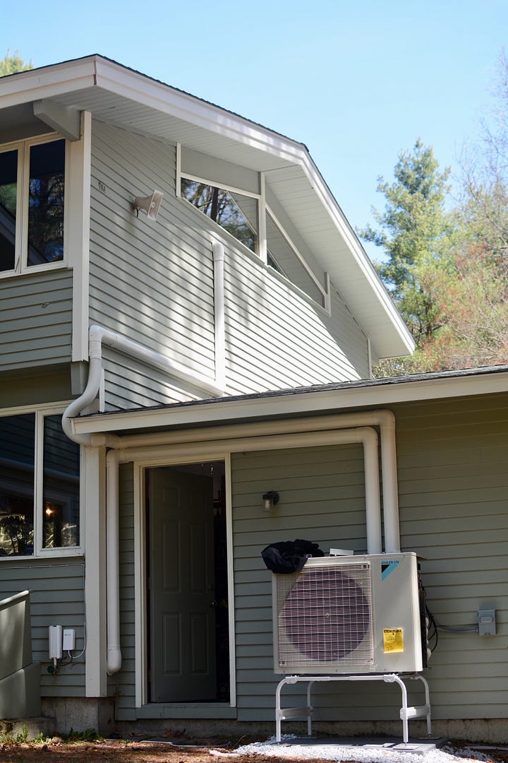 Contemporary house in Lincoln. The heating load, interestingly, is the same as the cooling load, largely due to the big windows & a greenhouse effect in the summer. We installed 2x Daikin outdoor units, which will power 7 mini-split heads indoors.