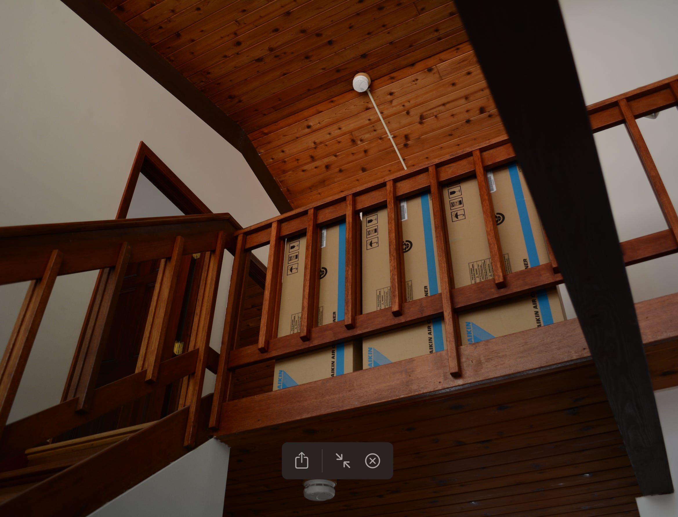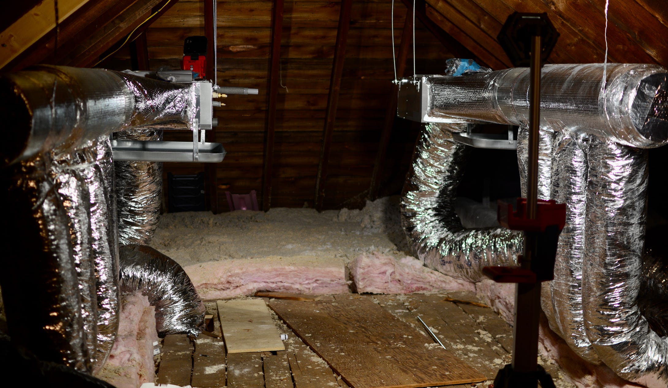 Home looking for new ductwork in the attic. The owners live on the 2nd floor, while there’s a separate unit on the 1st floor that also (already) has heat pumps. This is an installation involving one outdoor unit, connected to two slim ducted units (sometimes known as “pancakes”), conditioning about 7 rooms via. ductwork.