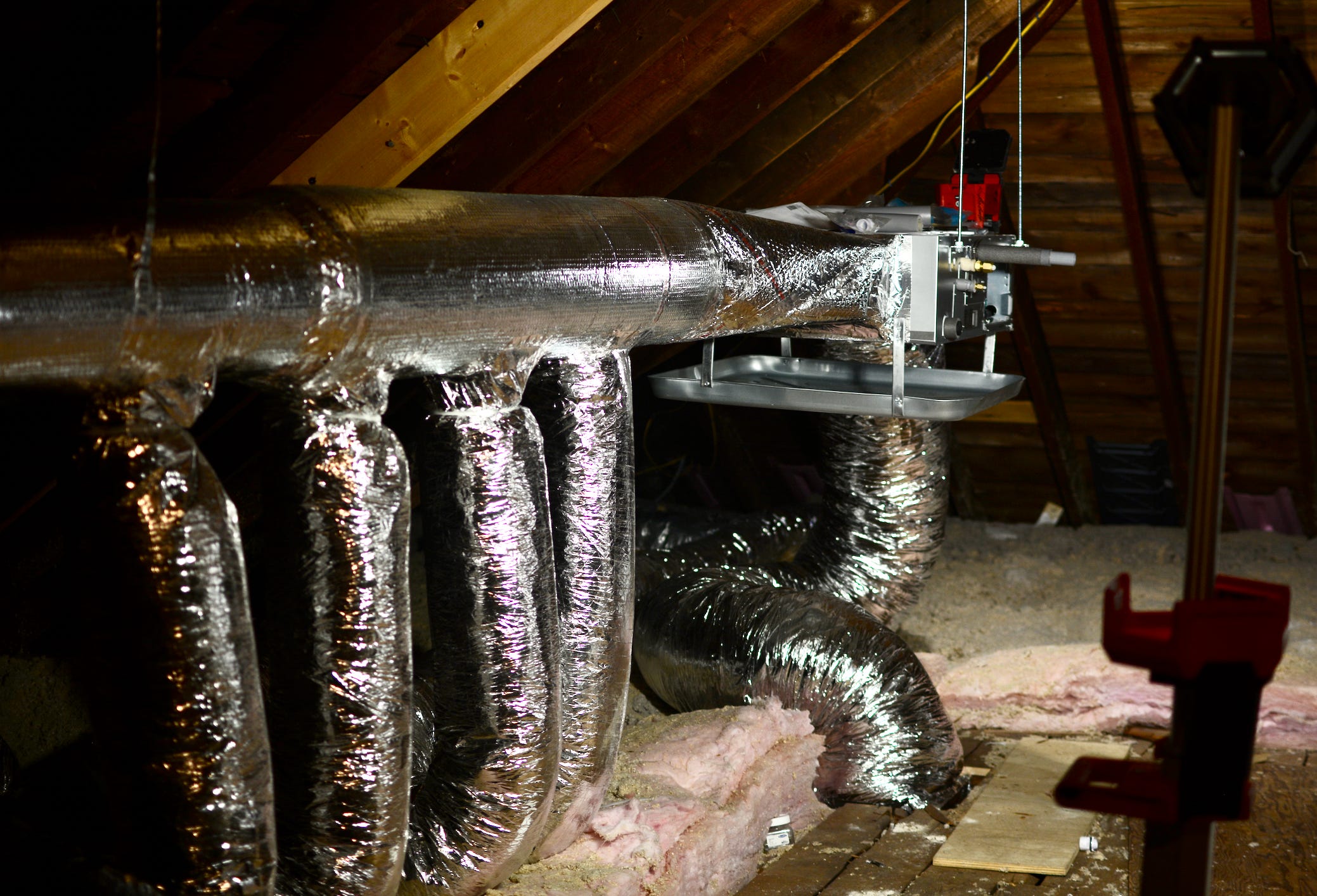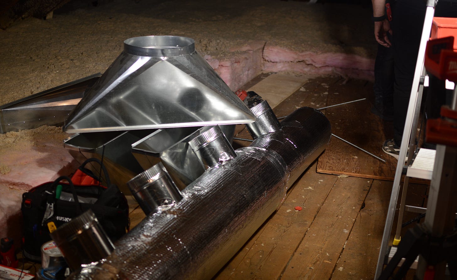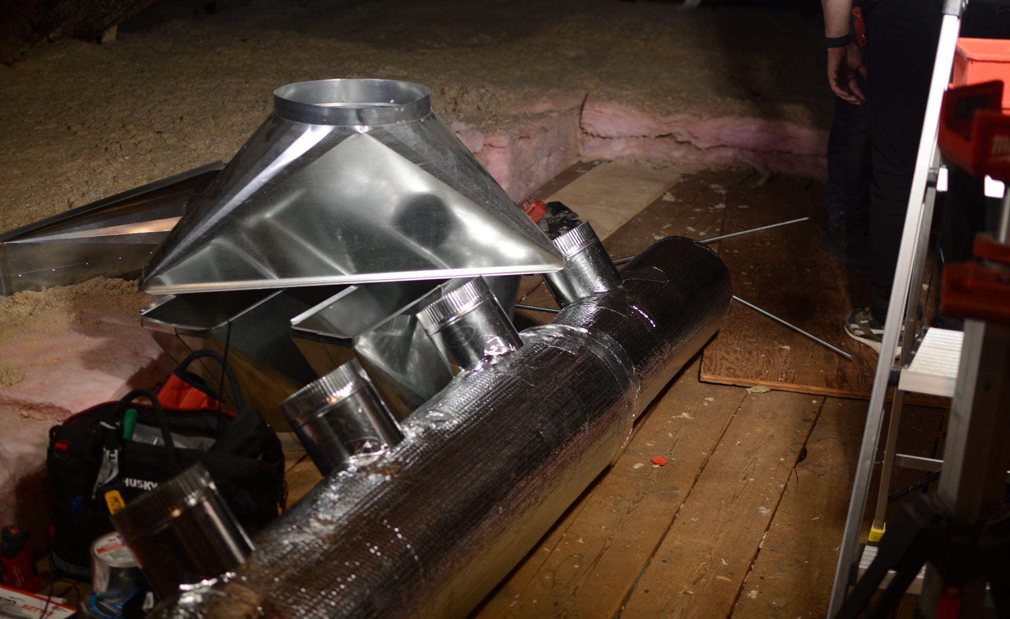 Ideally, preliminary sheet metal work is done by this point, but if there’s any insulation that needs to happen (e.g. wrapping the supply trunk in insulation), it happens at this stage.