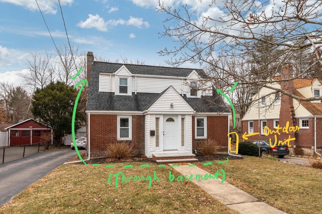 So, long story short: expect refrigerant lines running up the side of the house, and into/through the basement.