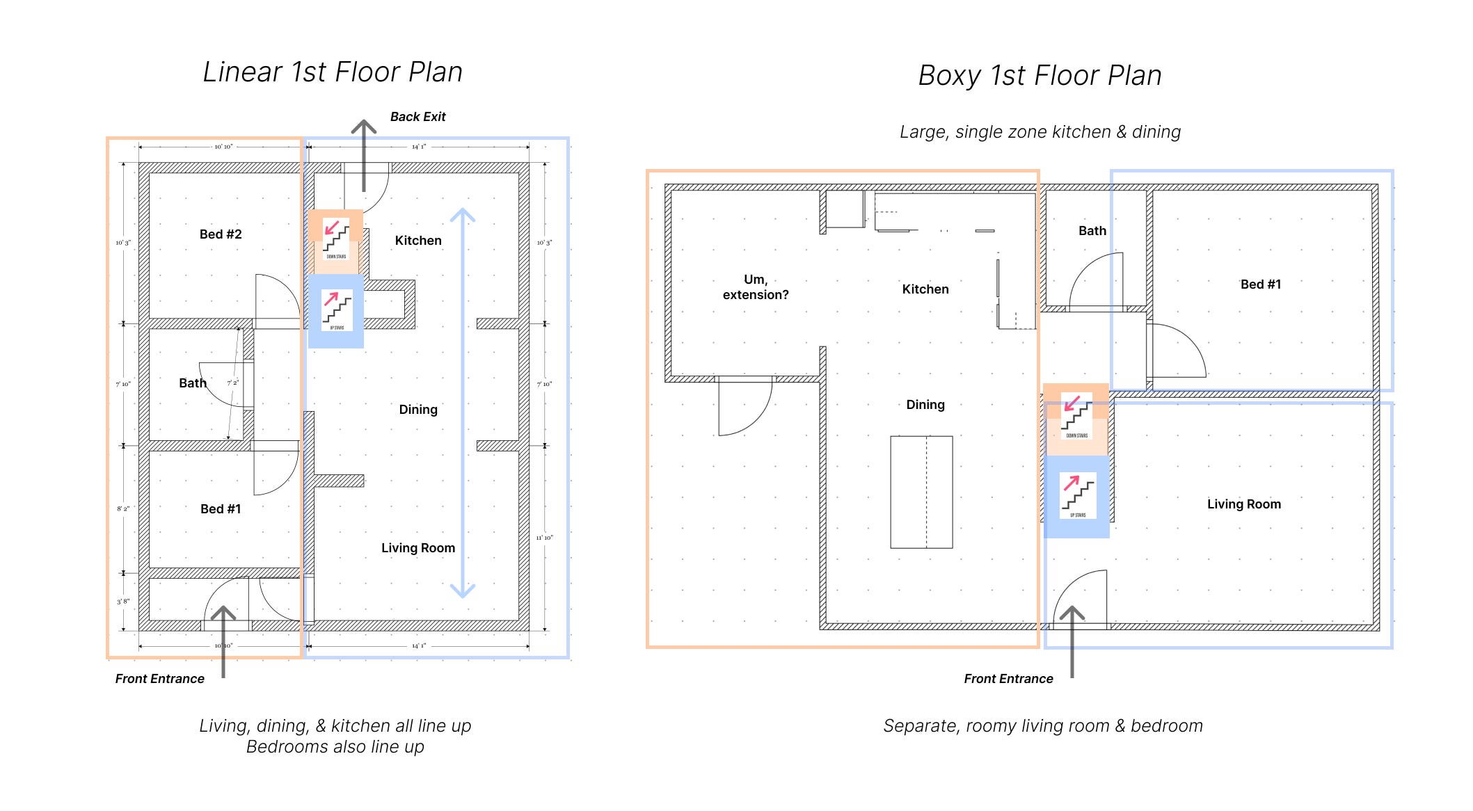 Got your floor plan in mind? I want you to count how many 1st floor zones you have: this is every discrete open space. Keep that in mind, because it will directly inform our design choices.