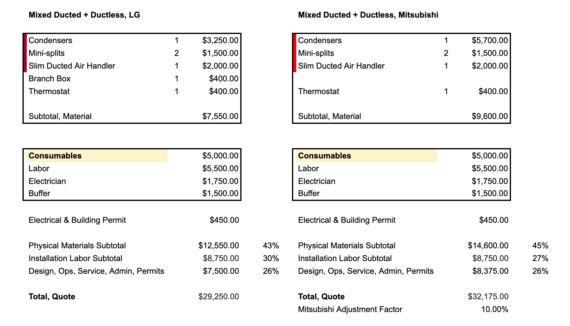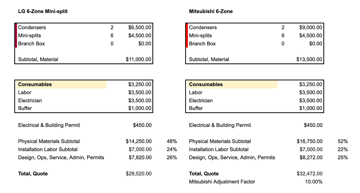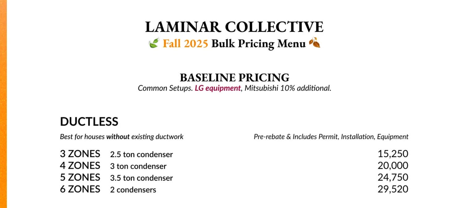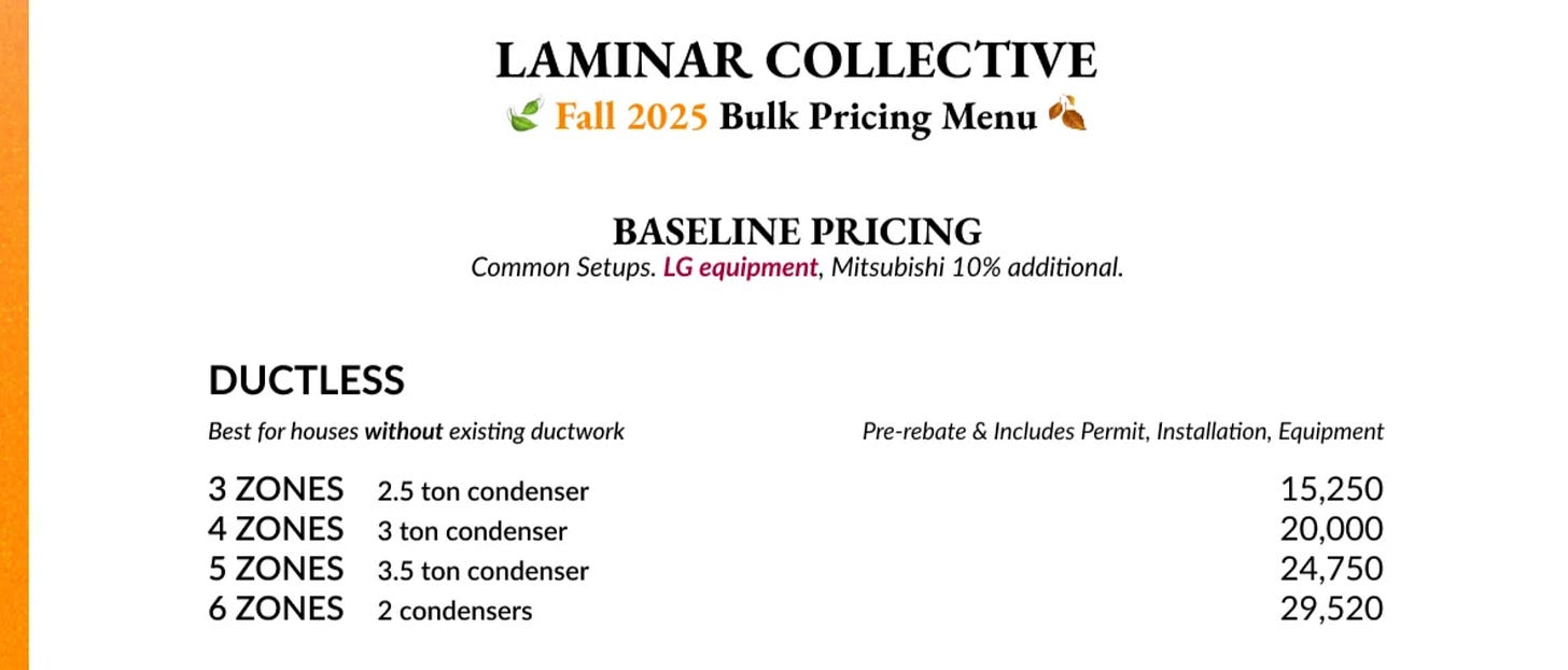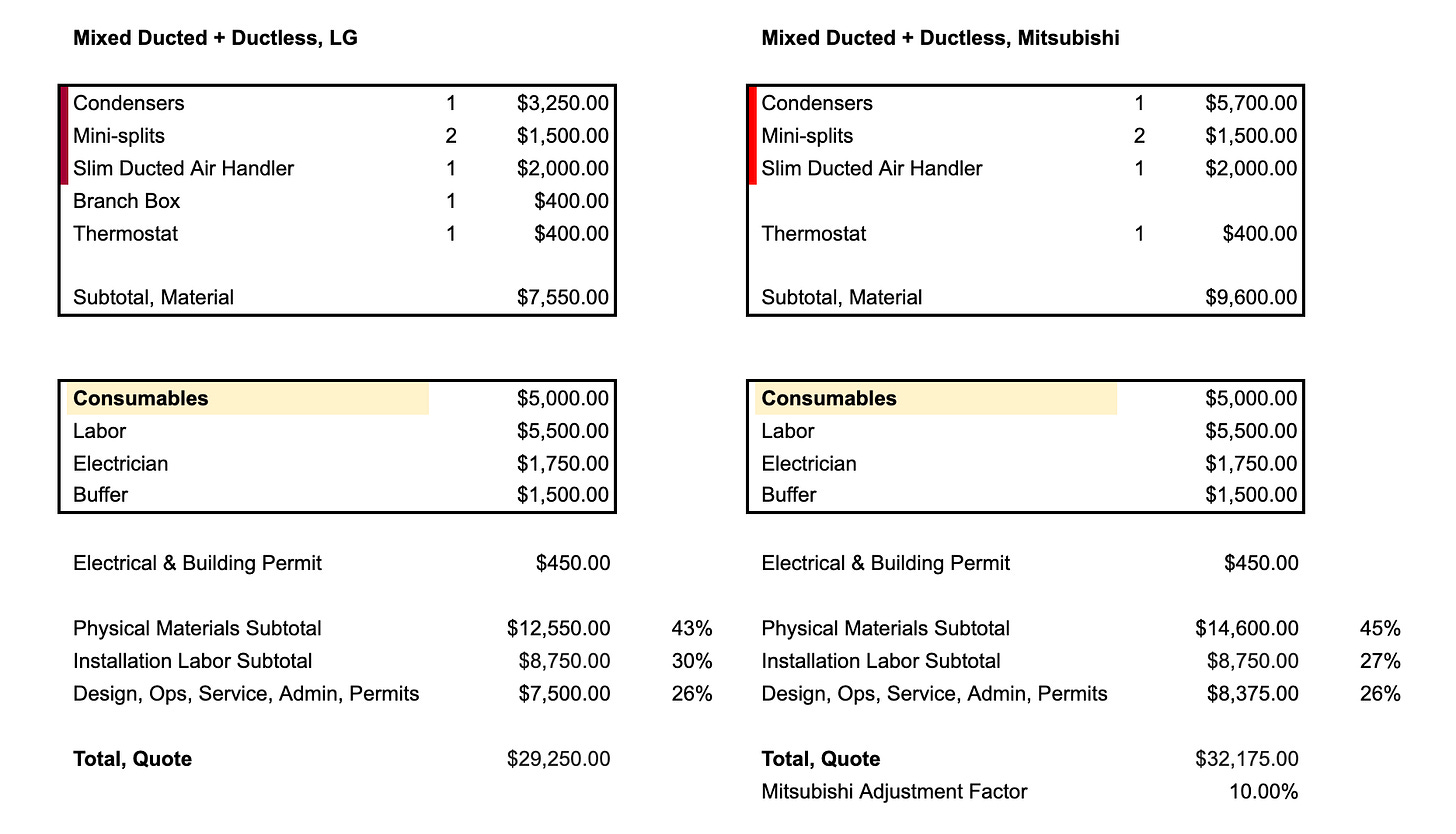 Here are the pre-rebate prices. Ductless is pretty simple: